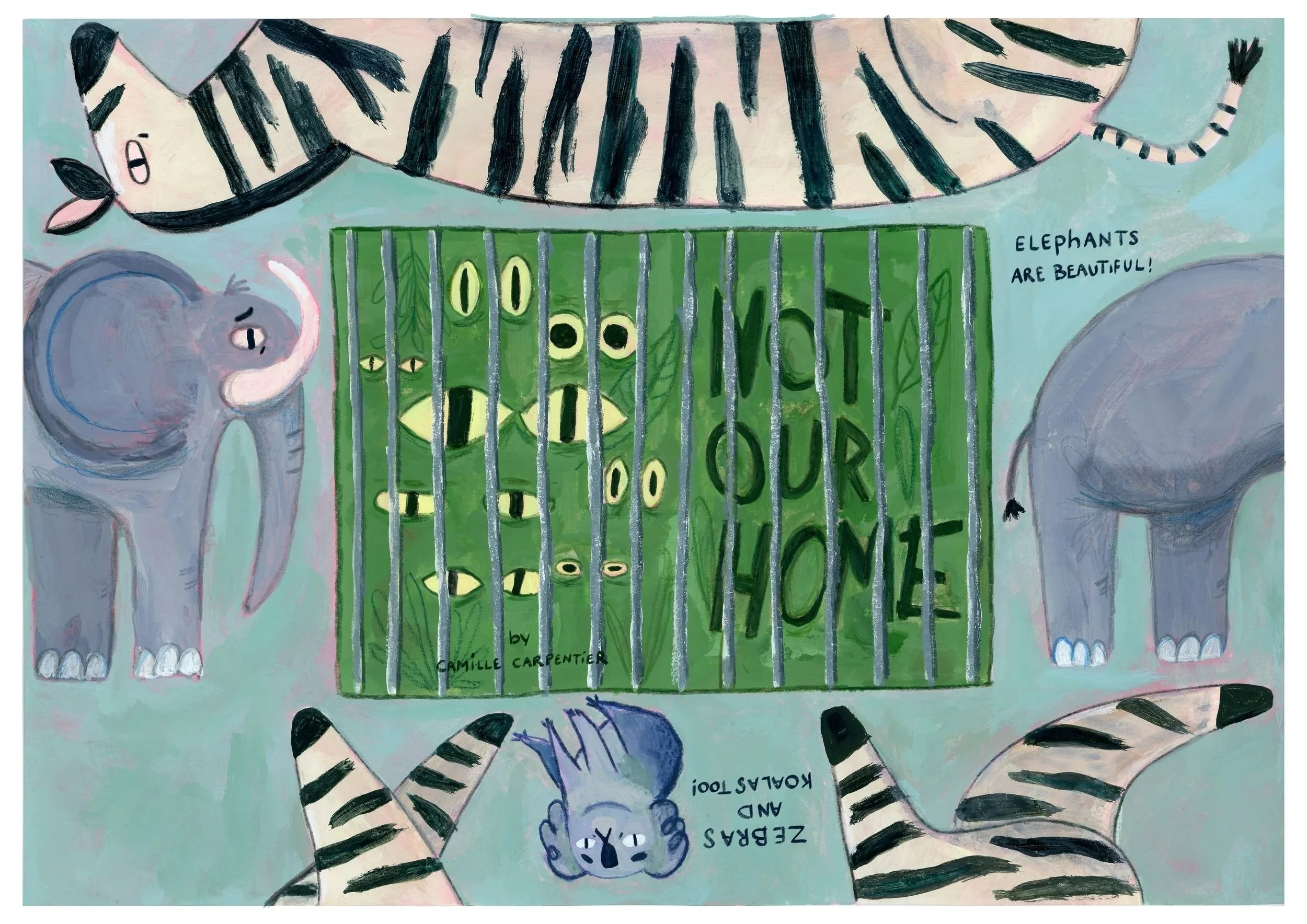 A small flipbook style zine that advocates against zoos and the caging of animals. The idea is that you can create your own animals by combining multiple ones. This is to represent more animals than are actually visible in the zine, as the zine calls for freedom of all animals and not just a few.